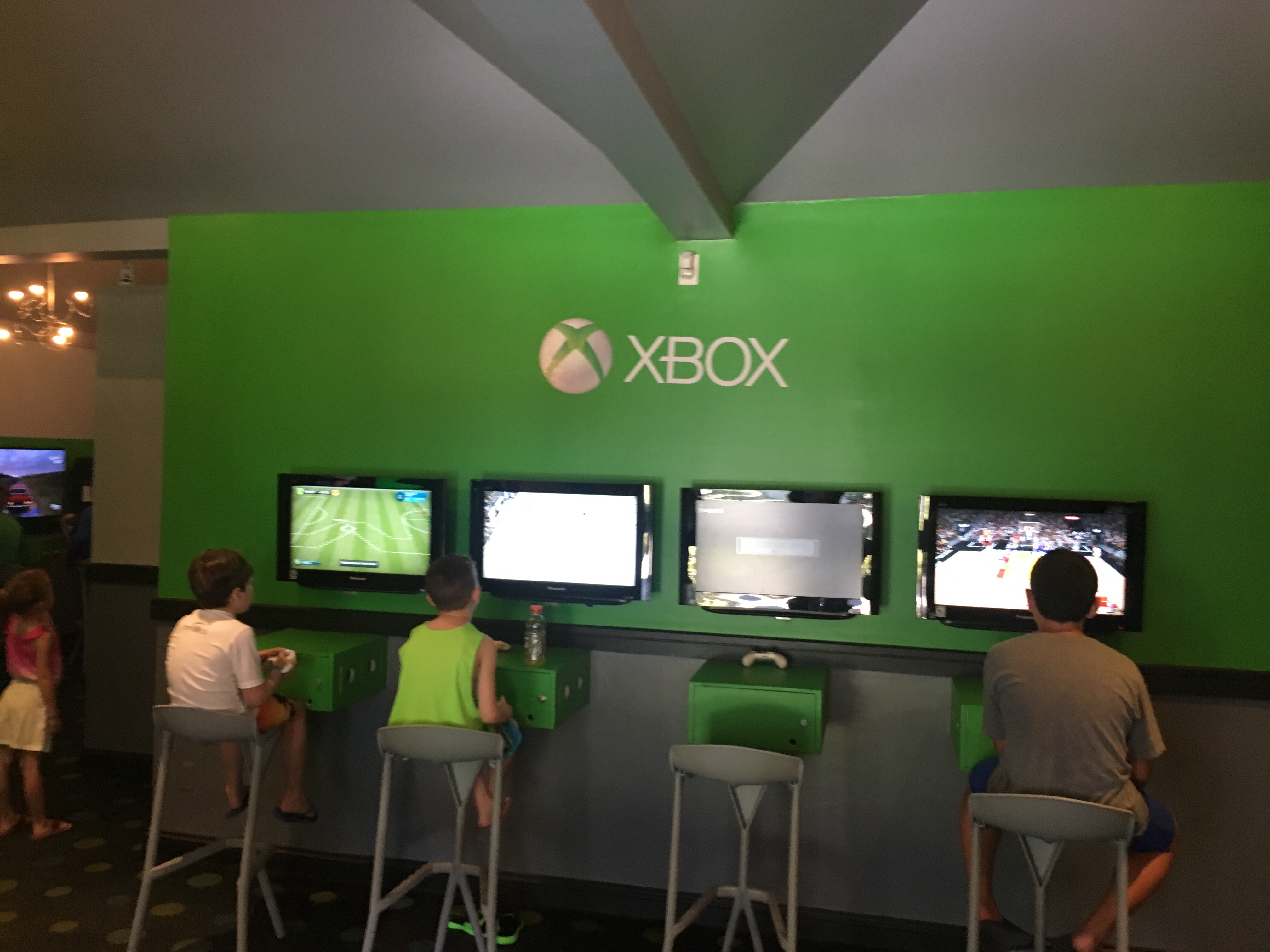 Departing, while sad, was as easy as arriving. Our flight was at 3:30, and our shuttle left at 12:30 from the “departure lounge,” We packed up our things and left them in the room. Someone came and picked them up at 10:00. We were free to enjoy the resort until we left on the shuttle. We wanted to avoid wet activities, so we got to enjoy basketball, life size chess, and the Xbox Lounge. (Yep, you read that correctly) We managed to keep this Mecca of screen time a secret from Sam for the majority of the trip, but on the last day it was actually a welcome activity. We dropped the kids off there and went on one last stroll through the grounds. This place has 50 flat screens, complete with stools, arranged much like an art gallery. It’s quite a site.